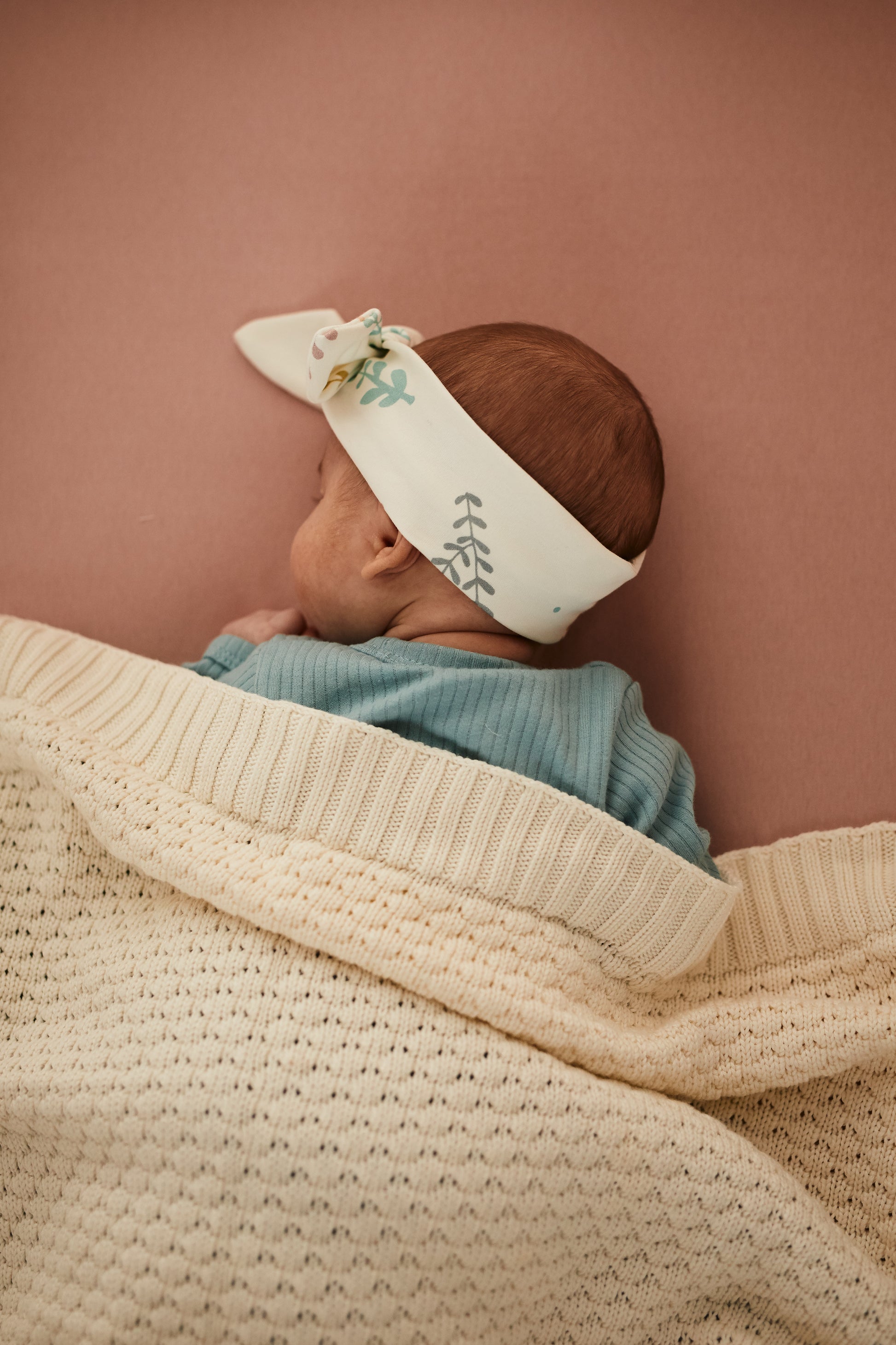 Eine weiche, angenehm anzufühlende Decke aus Baumwoll-Bambus-Garn. Ideal für ein Nickerchen zu Hause und im Kinderwagen. Sie ist leicht und luftig, sorgt für eine gute Luftzirkulation und funktioniert dadurch auch im Sommer gut. Geeignet als erste Decke, die deinem Baby lange Zeit dienen wird. Das Bubble-Strickgewebe und die interessante Farbe passen perfekt zu unserer Mullkollektion und den Bettlaken.