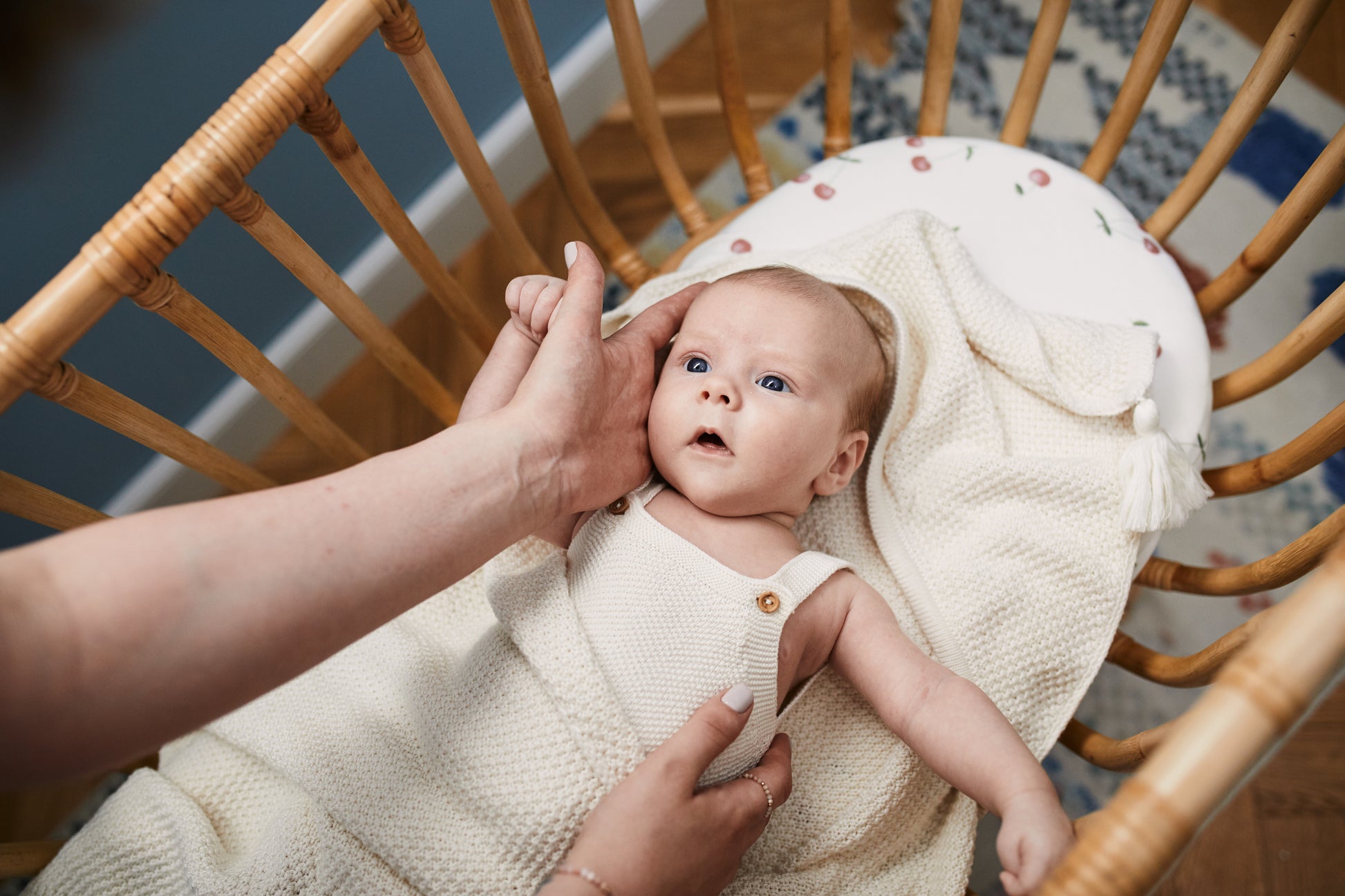 Eine gewebte Decke aus extrem feinen Bambus- und Baumwollfasern. Das feine Gewebe und die einzigartige Weichheit dieser Decke stehlen Mamas und Babys die Herzen. Ein Must-have in der Grundausstattung eines Neugeborenen. Die Kapuze mit der kleinen Quaste umhüllt angenehm das Köpfchen und schützt vor Kälte. Ideal geeignet zum Einhüllen von Neugeborenen und zum Zudecken eines älteren Kindes. Die Decke passt farblich sowohl zu unseren Mullprodukten als auch zu unseren Bettlaken.