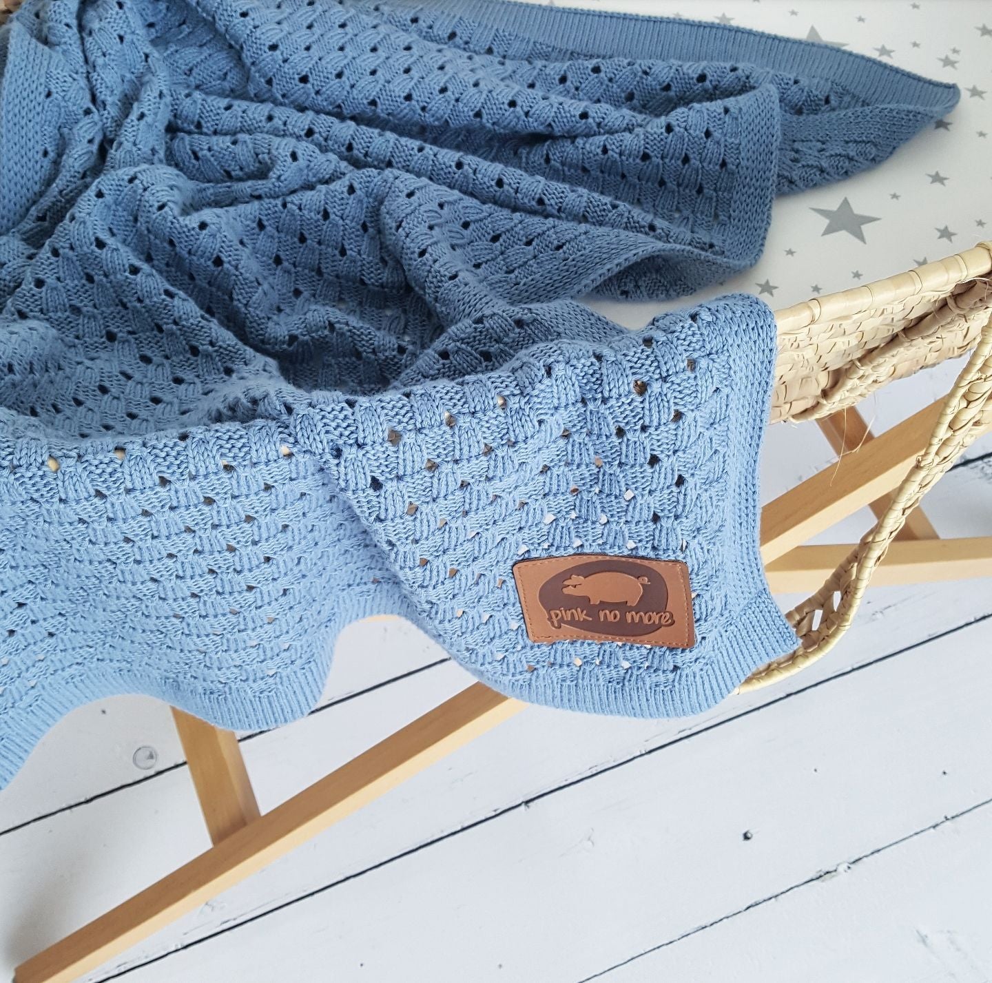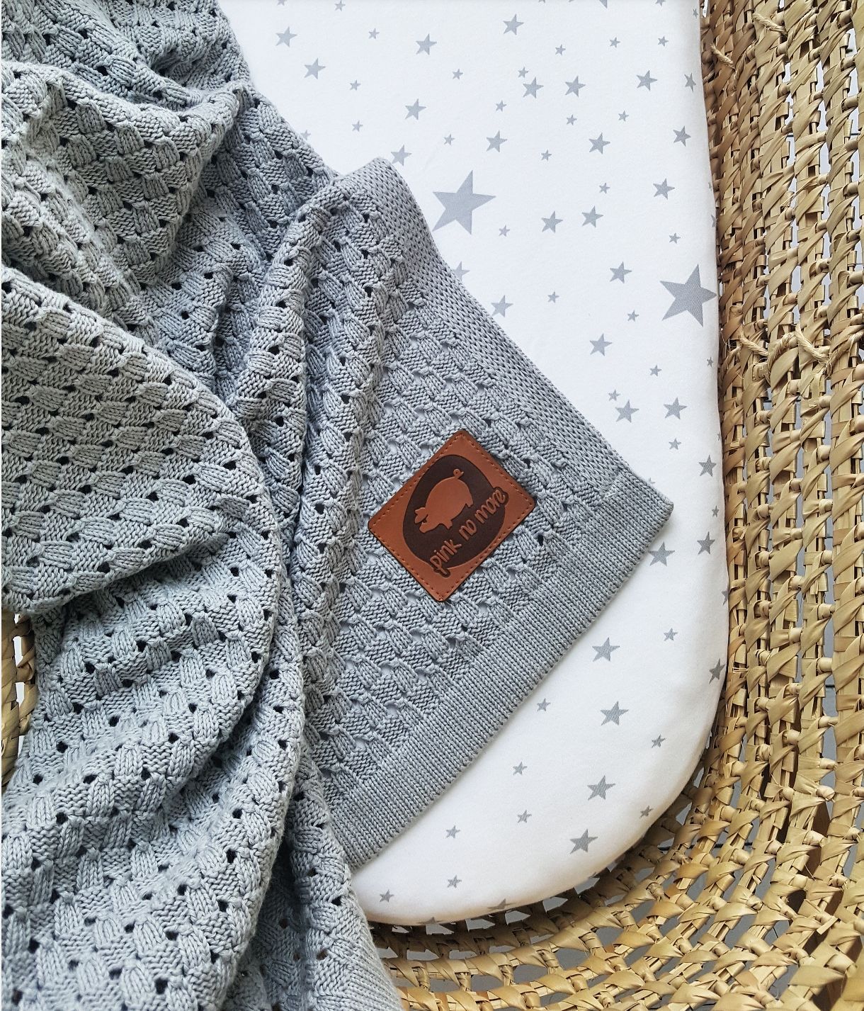 Eine weiche, gestrickte Decke aus hochwertigem Baumwollgarn. Ideal für Nickerchen zu Hause und bei Spaziergängen im Kinderwagen. Sie ist leicht und luftig, gewährleistet eine gute Luftzirkulation und eignet sich dadurch auch perfekt für den Sommer. Sie ist ideal als erste Decke, die deinem Baby lange Zeit dienen wird. Das schöne Gewebe und die interessante Farbe passen farblich sowohl zu unseren Mullprodukten als auch zu unseren Bettlaken.